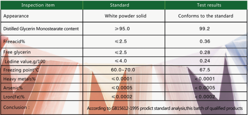 Distilled Monoglyceride is an ideal foaming agent and anti-shrinkage agent, it can be used as a foaming agent of high foamed polyethylene, polystyrene, with butane and other foaming agents with a very good effect.